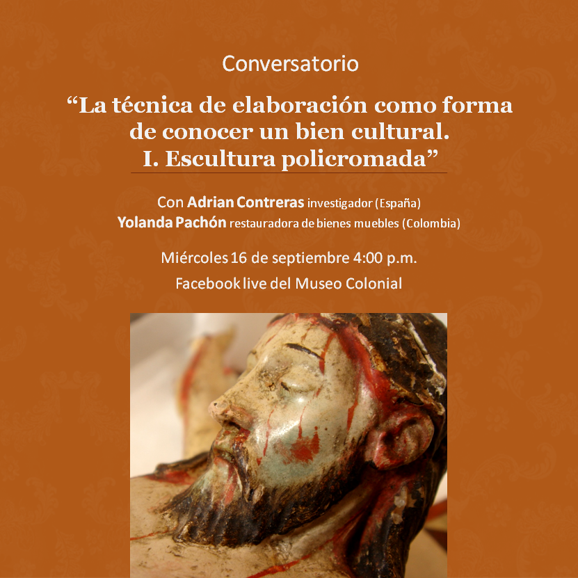 Conversatorio La técnica de elaboración como forma de conocer un bien cultural. I. Escultura policromada. Invitados: Adrián Contreras y Yolanda Pachón. Modera: Manuel Amaya.