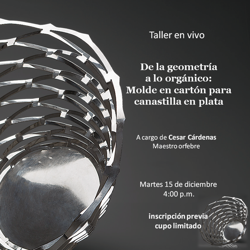En esta ocasión, el maestro orfebre César Cárdenas nos invita a explorar una técnica propia del oficio de la platería, donde, a partir de una figura plana, es posible diseñar piezas tridimensionales que servirán de base o molde para un objeto en plata. En este caso, haremos una canastilla que podrá cumplir funciones prácticas y decorativas.