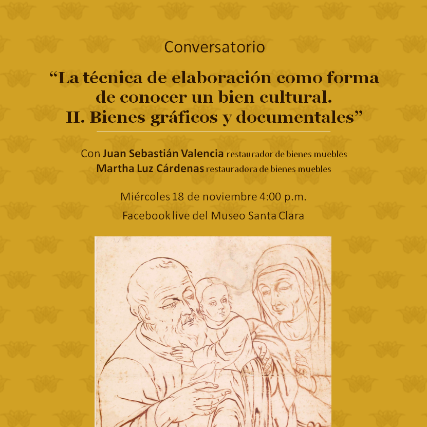 Con el fin de conocer a profundidad distintos tipos de objetos patrimoniales, en este conversatorio vamos a abordar la técnica de elaboración de obras y documentos sobre papel; uno de los soportes más utilizados durante el periodo colonial para componer dibujos, manuscritos o grabados iluminados que permitían entender la actividad humana, reflejando características relevantes, símbolos de la memoria colectiva de un pueblo, nación, región o sociedad.