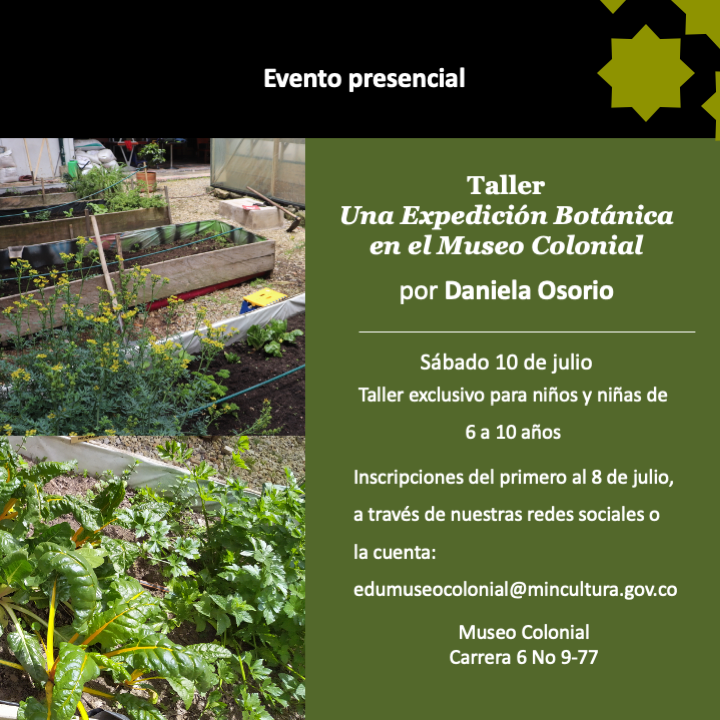 Taller exclusivo para niños y niñas de 6 a 10 años inscribiéndolos a través de nuestras redes sociales o la cuenta: edumuseocolonial@mincultura.gov.co